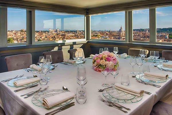 – Per il brindisi in terrazza privata con vista su Roma con champagne i tavoli sono da 10 persone, prenotazioni di numero inferiore verranno accorpate.